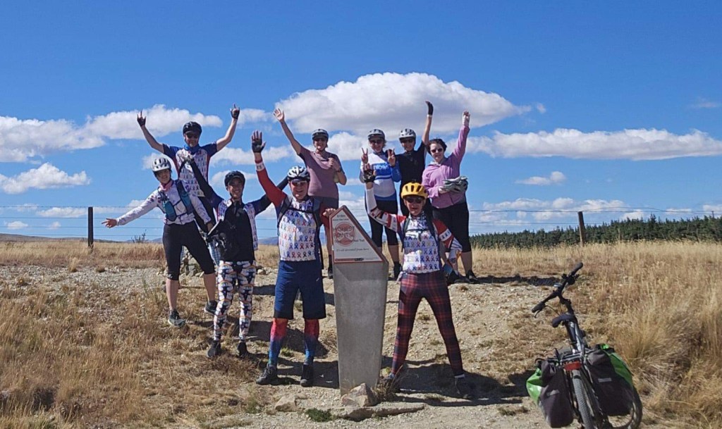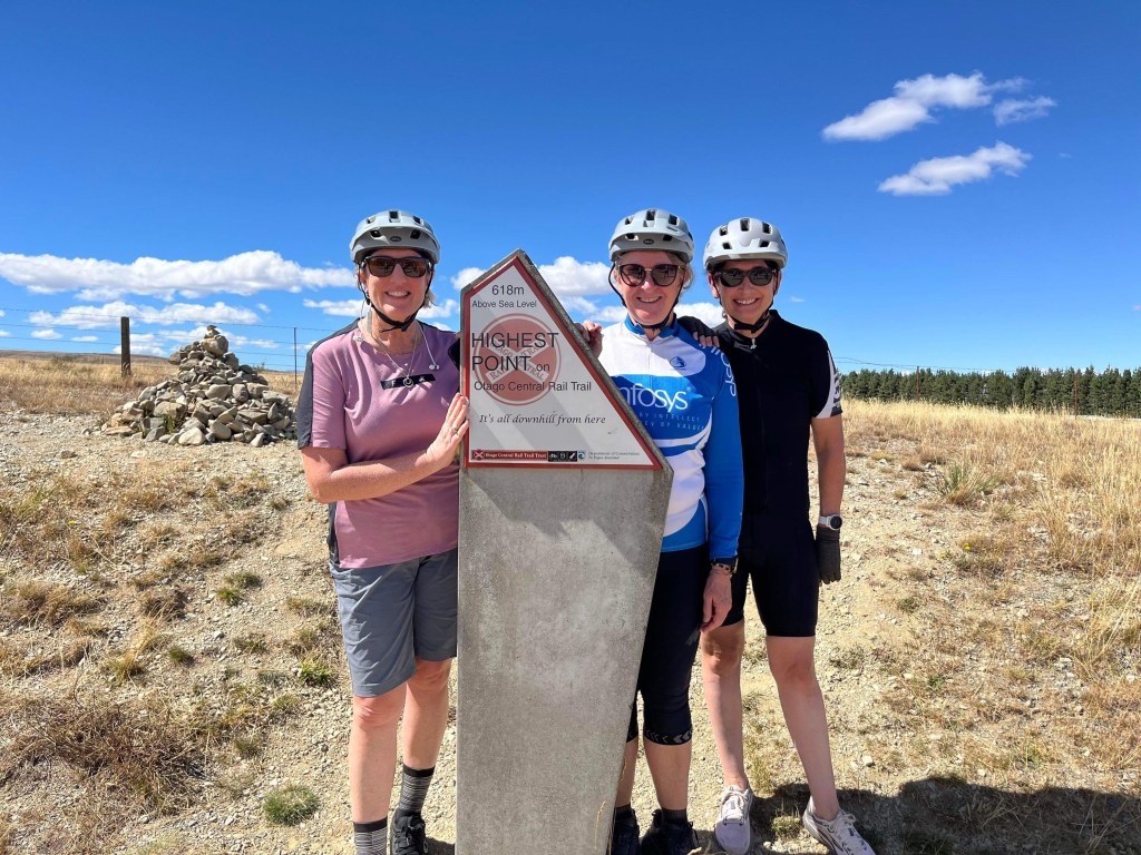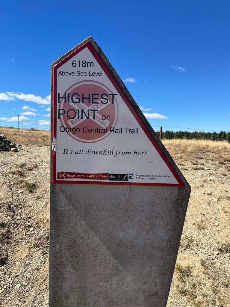 Once the whole group arrived, we took pics and flew down the last 2km to our accommodation – as the sign says, it’s all downhill from here!